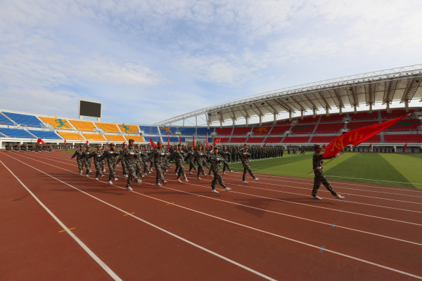 9月14日上午,我院在体育场举行了2018级新生军训会操表演暨表彰总结大会。呼伦贝尔军分区副司令余景亮,海拉尔区人武部部长王景昌,呼伦贝尔学院学生处副处长、武装部副部长核心,军分区战备建设处参谋赵永鑫,海拉尔区人武部参谋裴敬宇,学院党委副书记 、院长张廷,学院党委委员、副院长张建华,学院党委委员、副院长其其格出席大会。各系负责人及学工办主任、辅导员(班主任)、全体承训教官以及1900名参训新生参加。大会由学生处处长、武装部部长高昕主持。