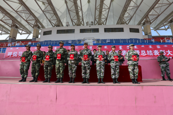 呼伦贝尔学院民兵应急连的教官代表付立琼以及我院参训学生代表商贸旅游系冯琪分别上台发言。